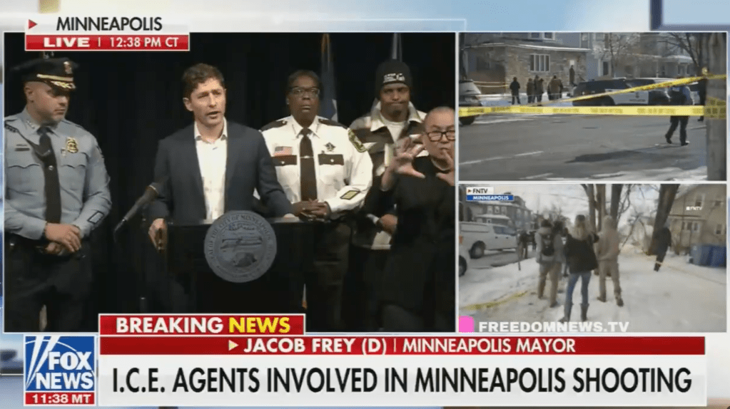 — Jacob Frey, maire de Minneapolis, réagissant à la mort d’une automobiliste, abattue par un agent de la police de l’immigration qui participait à une opération dans un quartier résidentiel de la première ville du Minnesota. Frey a ajouté que « le récit selon lequel cela a été fait en légitime défense est complètement absurde ». L’automobiliste était citoyenne des États-Unis.